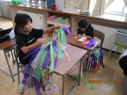 だら祭りで発表する、スイミーダンスの衣装づくりをしました。