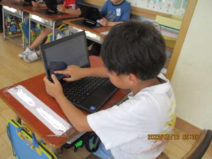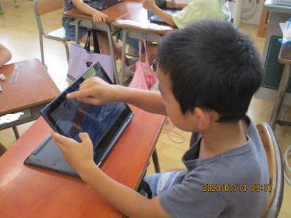 クロムブックを使って、楽しい夏の絵を描きました。 クロムブックの使い方が、どんどん上手になってきました。