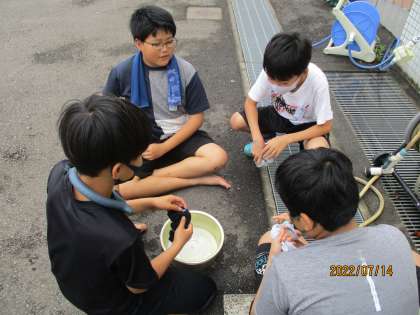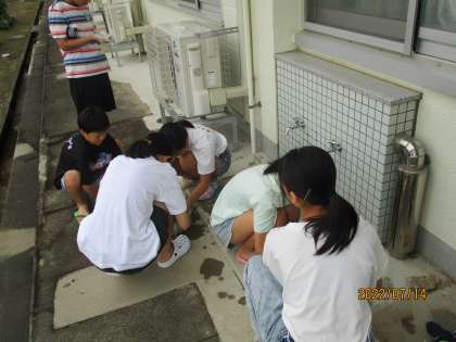 来週には乾いたくつ下を観察して、汚れの落ち具合を確かめます。