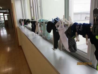 自分のくつ下をもみ洗いし、汚れがひどい所はつまみ洗いして干してみました。