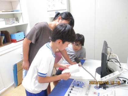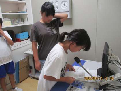お昼の校内放送で各学年の代表が順番に1学期にがんばったことを発表しています。