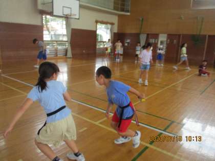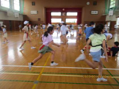 7/19 色団別しっぽ取り 公開日 2023/07/19 更新日 2023/07/19 学校から 今日は白団の色団別しっぽ取り大会でした。 元気もりもり健康委員会が企画した大会で、今日は白団の仲を深めました。