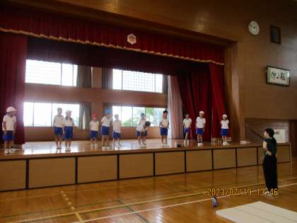 今日は体育館のステージで練習しました。