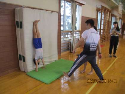 自分の技を磨こうと頑張っているマット運動の学習も、いよいよ発表の時間に近づいてきました。