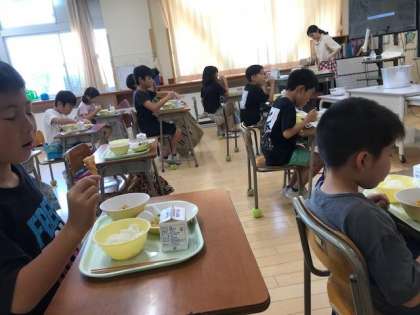 2学期最初の給食ですが、1学期よりもずいぶん早く準備できたクラスもありました。
