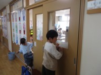 子供たちの作ったフリスビーは、新聞を丸めて枠をつくり、その中に思い思いに絵を描いた画用紙をはりつけたという、自分だけのフリスビーです。