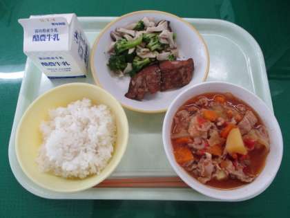 トマト肉じゃがは、今日初めて給食に登場しました。