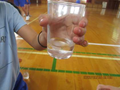 実験後、水蒸気はどこにでもあるのか、冷たい水の入ったコップを手に、学校中を歩いて探しに行きました。