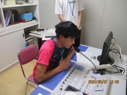初日の今日は、お昼の校内放送で自己紹介をしてもらいました。