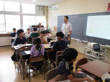 外国の友達に日本の夏休みを紹介するポイントをグループで相談し、英語を使って発表しました。