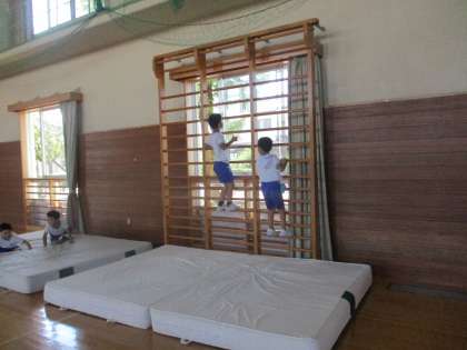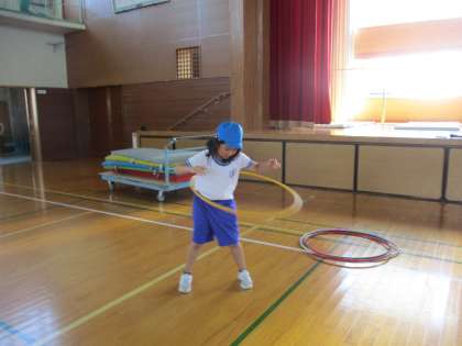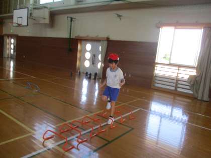 梯子登りやフラフープ、ハードルなどいろいろな動きに挑戦しました。