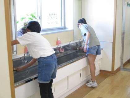 朝から5年生が、学校をきれいに掃除しています。今日も、5年生が学校のリーダーとして、やる気いっぱいがんばります。