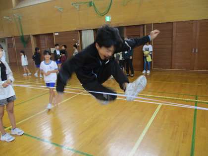 ファミリー班のメンバーと楽しく体力づくりをしました。