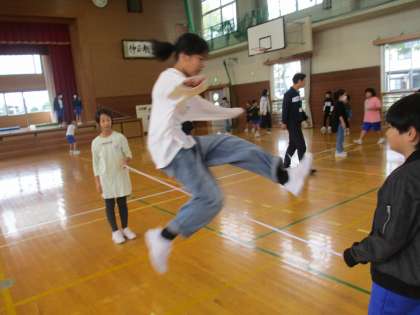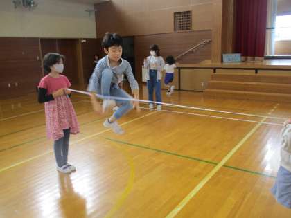 今日のぐんぐんタイムから「ゴム跳び」が始まりました。