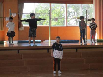 「天までとどけ 1・2・3!」の声が廊下まで響いていました。