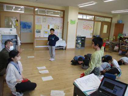 全体の動きを確認しながら、スイミーや兄弟たちになりきって練習しています。