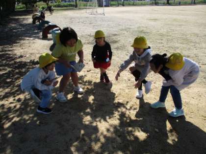 今日のひいらぎタイムは、天気がよかったのでクラス全員で外に出ました。