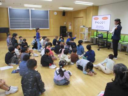 来週の校外学習について、1年生のみんなと一緒にお話を聞きました。