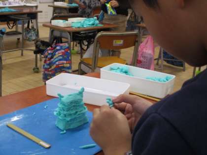 図画工作科で自分の思い出を粘土を使って形に表す学習に取り組みました。