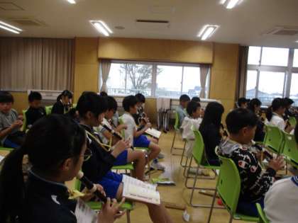 音楽科でリコーダー演奏に挑戦中です。