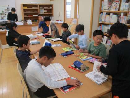 話し合いにあたって、まずは自分が読み聞かせたい本を選びに行きました。さすがは本が大好きな3年生です。読んであげたい本もすぐに選ぶことができていました。