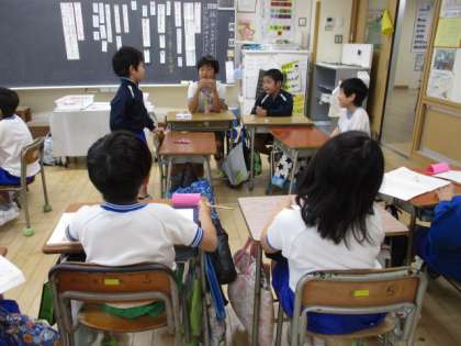 おうちの人からのお悩み相談を話題として、どうしたら解決できるかを考えました。学習を通して、話合いのワザがたくさん使えたことを、うれしそうに話してくれました。