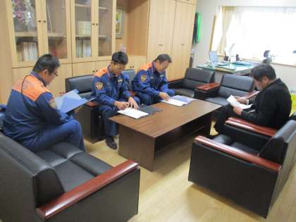 避難訓練のあとには、倉垣小学校の防災の様子について、校長室でお話ししてくださいました。