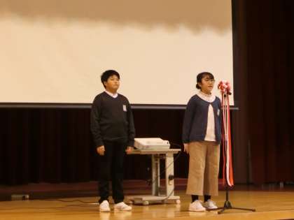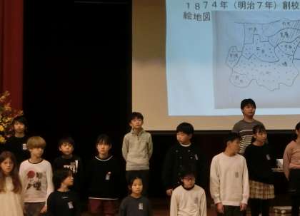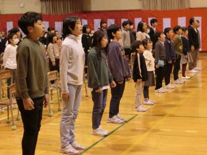 150年記念式典の第2部は、150年を迎えた倉垣の子供たちの「思いや願い」でした。児童代表の言葉、これからの倉垣小学校への思いの呼びかけ、記念ソングの合唱をみんなで行いました。
