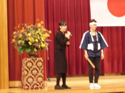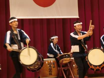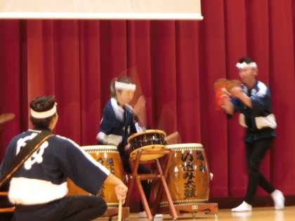 150年記念式典の第3部は、越中いさみ太鼓のみなさんによる和太鼓の演奏でした。子供たちは、和太鼓の演奏を目の前で見る体験は初めてでしたが、次第にばちさばきのまねをしたり、足踏みをしたりして、演奏を楽しんでいる様子でした。演奏者の中の倉垣小学校の卒業生にインタビューをしました。「どんなことでもよいから、やりつづけ、楽しむことが大切だ」とメッセージをいただきました。