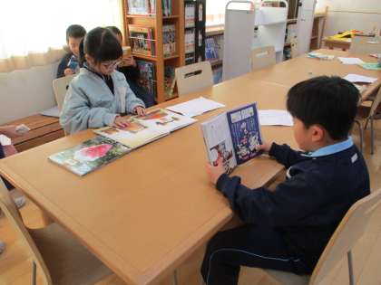友達と面白かった本を紹介しあったり、静かに本を読んだりしながら、本と親しんでいます。
