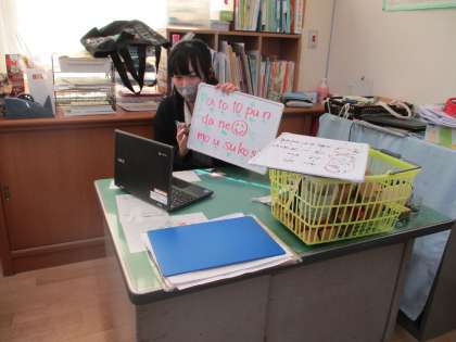 リモートで授業をしました。 ローマ字はマスターしたかな? 確認問題をしながら楽しく学習しました。