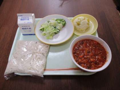 ソフトめんのミートソースかけ 牛乳
