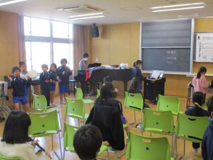 休み時間にはグラウンドでサッカーをしたり、音楽の時間にみんなで「パフ」の曲の演奏をしたりして楽しみました。