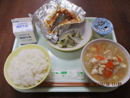 ごはん 牛乳 さばの銀紙焼き かぶのいろどり