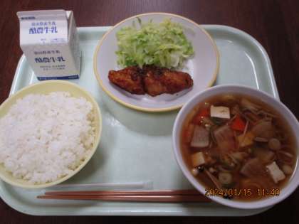 今日の「すいとん」は、だいこん、にんじん、ねぎ、ほししいたけ、えのきだけ、もめんどうふなど、たくさんの具材が入った豪華な汁物でした。野菜もたくさん食べたので、明日は視力バッチリかな。