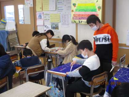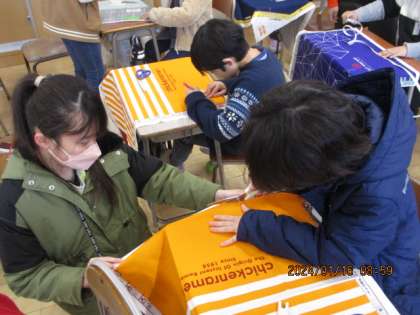 切り方を間違えないようにと、友だちと切る箇所を見合ったり、切り方を確かめ合ったりしながら、慎重に作業を進めていました。