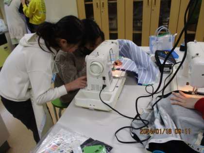 ミシンの使い方ももうすっかり慣れ、まっすぐに縫うことも曲がったところを縫うこともとても順調な様子でした。