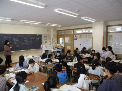 「四人五きゃく」の教材を読んで、力を合わせる気持ちになれたのはどうしてか、力を合わせるというのはどうすることなのか、それぞれが自分の気になったことをもとに、考えを発表しました。