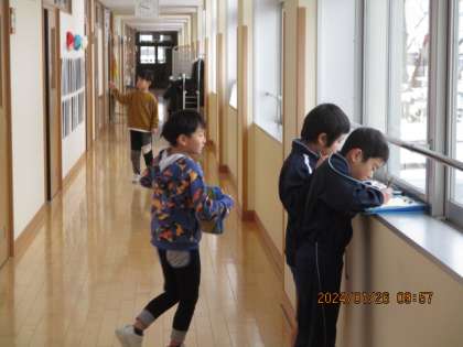 2年生の子たちが、校舎内を回りながら、数の多い物がないか探していました。