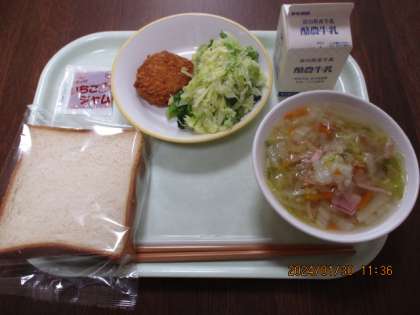 今日はいつものごはんとは違って、主食は食パンでした。