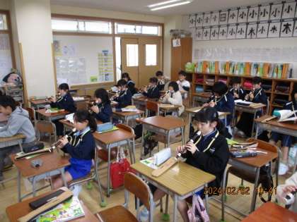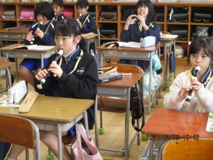 教室では、子供たちがCD伴奏を自分たちで流して、繰り返しリコーダー演奏の練習をしんけんに行っていました。さすがはもうすぐ上学年。自分たちで落ち着いて進められるしっかり3年生でした。