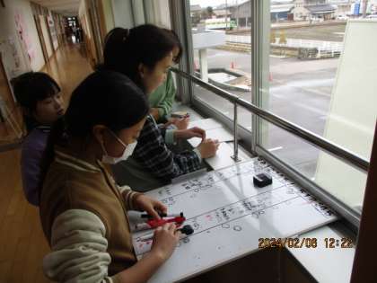 さっそく、朝の玄関であいさつ運動に参加する子、お昼の校内放送の原稿作りを5・6年生に教えてもらう子、放送の仕方を教わりながら放送した子などがいました。
