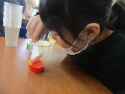絵の具と水を混ぜて、色水をつくりました。