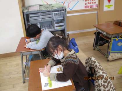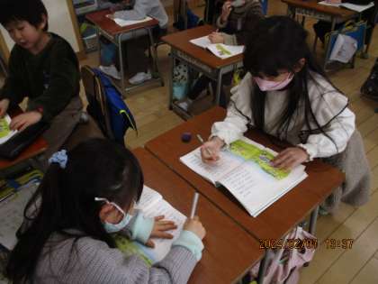 動物が大好きな子供たちは、早く話を読みたいと、いっしょうけんめいに漢字に読み仮名を書いていまし。