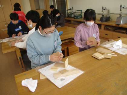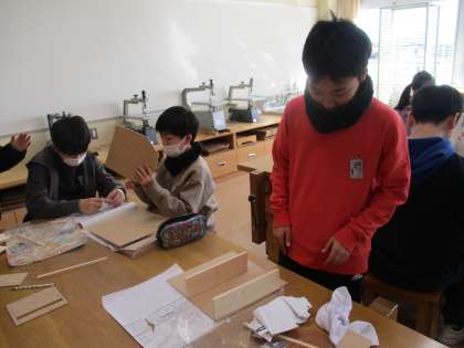 1枚の板から作品作りに取り組んでいます。 なかなか凝ったデザインの人もいて、出来上がりが楽しみです。