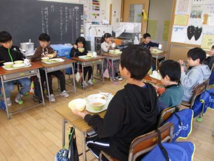 給食の時間、お試し期間として「食事マナーコンテスト」を開催しました。「お皿を持ってたべているのがいいね。」など、友達のマナーについてよく見ている様子でした。