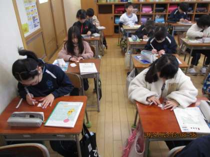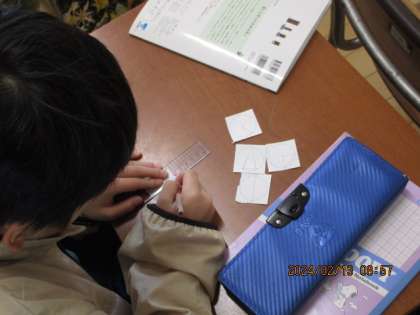 3年生は算数で、いろいろな三角形をカードに書きました。
