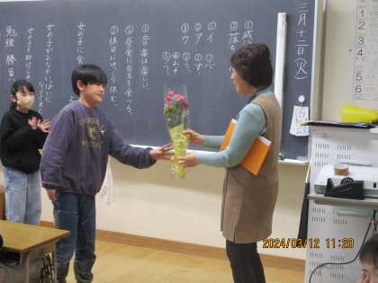 1年間音楽の授業を教えていただいた先生にメッセージと花束を送りました。