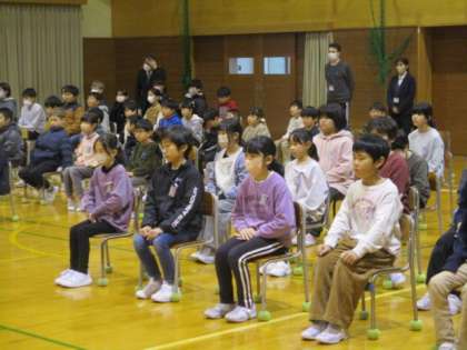 今日は全校での卒業式練習を行いました。 卒業生はもちろん、1〜5年生もとても立派な態度で練習に臨んでいました。