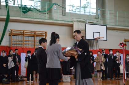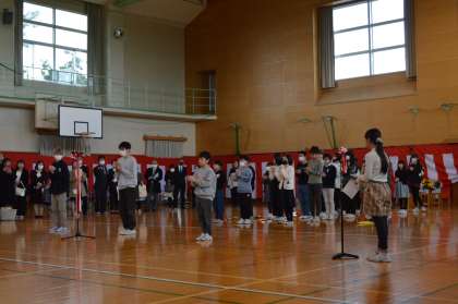 互いにエールを送りあい、5年生の子供たちは、倉垣小学校のよりよい未来を託されました。